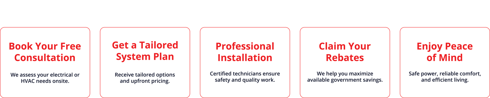 We provide a complete range of home solutions. This includes HVAC services (Furnaces, ACs, Heat Pumps, Water Heaters) and Electrical services (Panel Upgrades, EV Chargers, Smart Wiring, and Lighting).